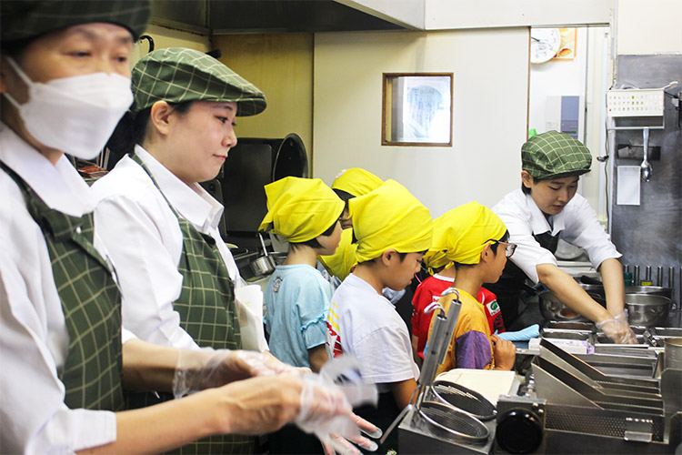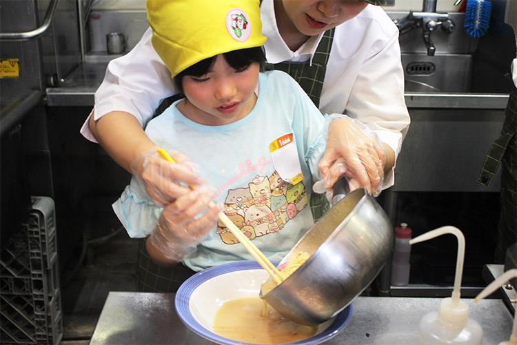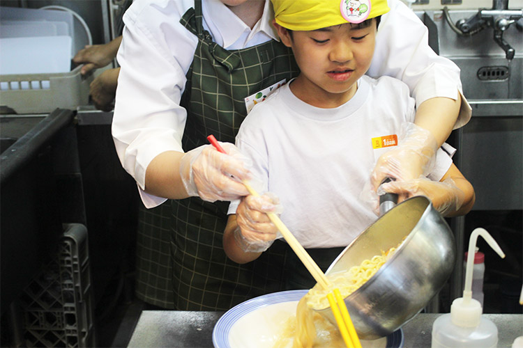 座学、手洗い、ちゃんぽんづくり、型抜き、試食、