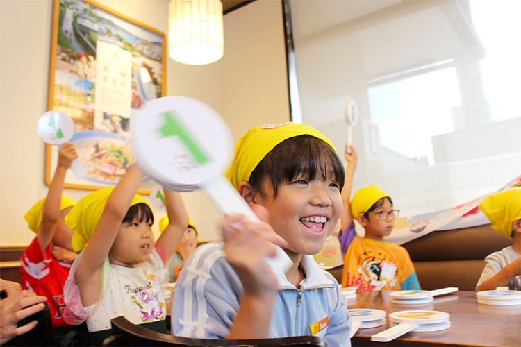 ちゃんぽんにまつわるクイズや実際に野菜に触れながら、野菜について楽しく学びます。