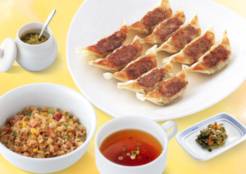 TOP > メニュー > ぎょうざ定食 GYOZA TEISHOKUぎょうざ定食 ぎょうざ7個定食(ごはん) ぎょうざ7個定食(半チャーハン) ぎょうざ10個定食(ごはん) ぎょうざ10個定食(半チャーハン) ぎょうざ15個定食(ごはん) ぎょうざ15個定食(半チャーハン) メニューTOPへ戻る ※商品の価格は全て税込です。 ※店舗により価格が異なる場合があります。 ※店舗により一部販売をしていない商品がございます。 ※使用する野菜は季節等の事情により、予告なく変更することがあります。 ※東京23区、北海道、沖縄県、小田急マルシェ町田店、新横浜北口店、成田国際空港第3旅客ターミナルビル店、京都四条河原町店、難波千日前店を「特別価格」としています。